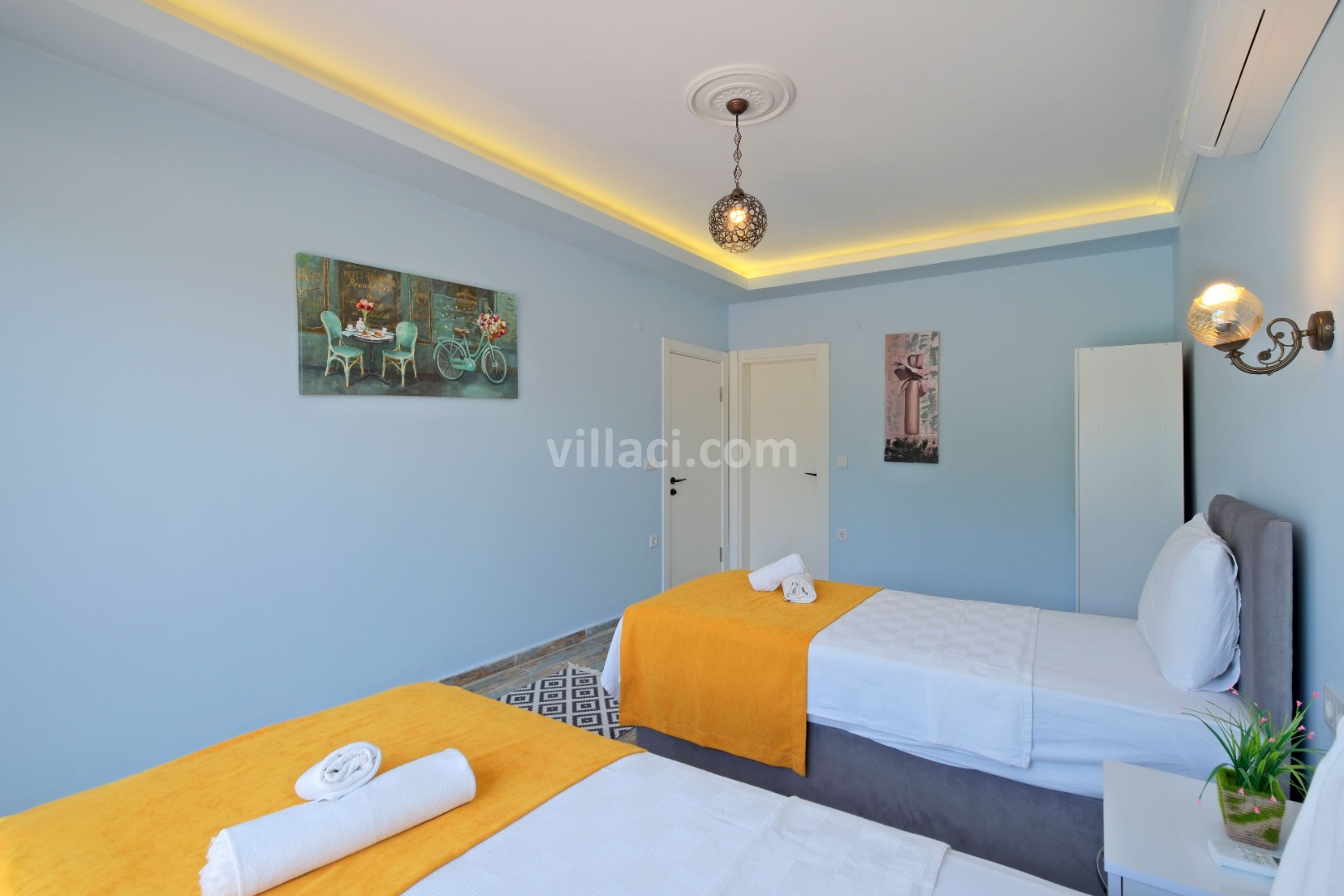 2. Yatak Odası2 Tek Kişilik Yatak, 1 Banyo/WC, 1 Komodin, Elbise dolabı, Klima