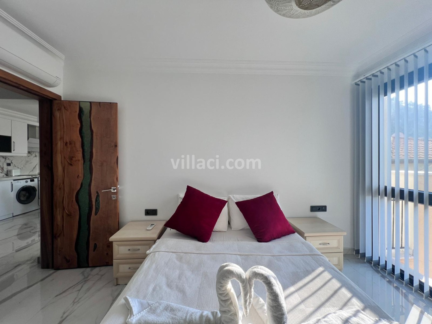 1. Yatak Odası2 Çift Kişilik Yatak, 1 Banyo/WC, 2 Komodin, Elbise dolabı, Makyaj Masası, Klima