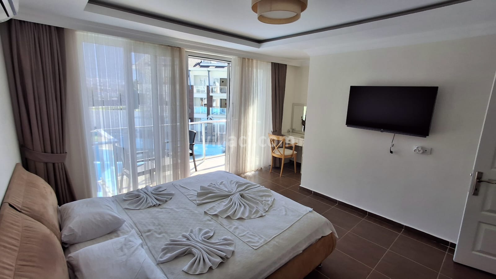 1. Yatak Odası1 Çift Kişilik Yatak, 1 Banyo/WC, 1 Komodin, Elbise dolabı, Makyaj Masası, Klima