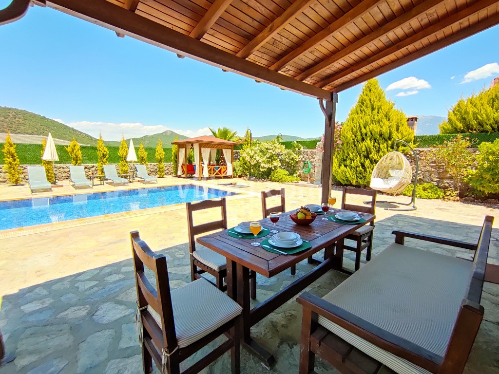 Muğla, Fethiye ilçesine bağlı Kayaköy Mevkiinde bulunan Villa Asalet 2, 3 yatak odalı 6 kişilik konaklama kapasitesine sahip olup Tek Katlı Doğa manzaralı özel havuzlu villalarımızdan biridir. Sakin ve huzurlu bir tatil geçirmek isteyen Muhafazakar konuklarımız ve Geniş aile gruplarımız için özel olarak tasarlanmış olup, konforunuz için her ayrıntı düşünülerek dizayn edilmiştir.