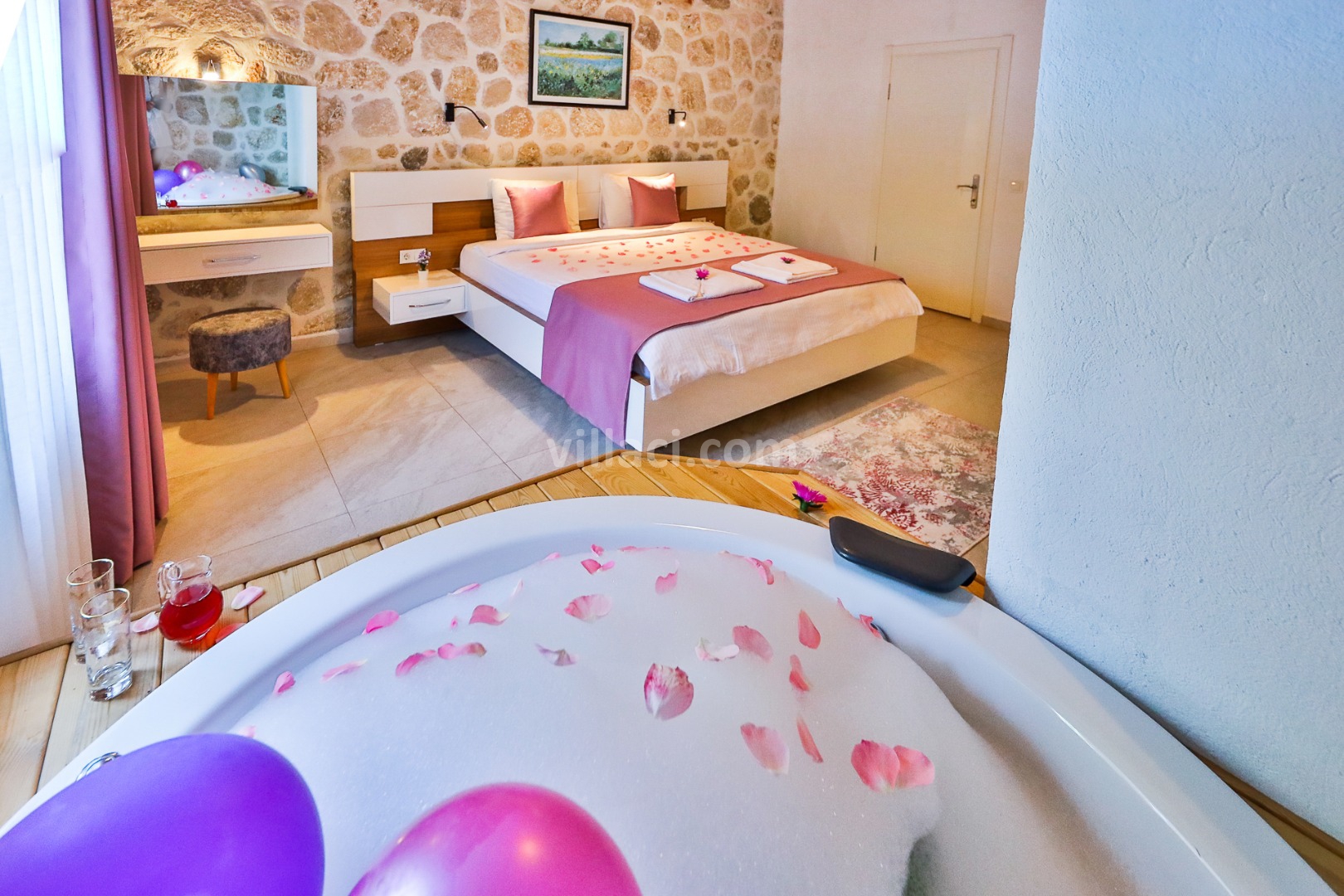 1. Yatak Odası1 Çift Kişilik Yatak, 1 Jakuzi, 1 Banyo/WC, 1 Komodin, Elbise dolabı, Makyaj Masası, Klima