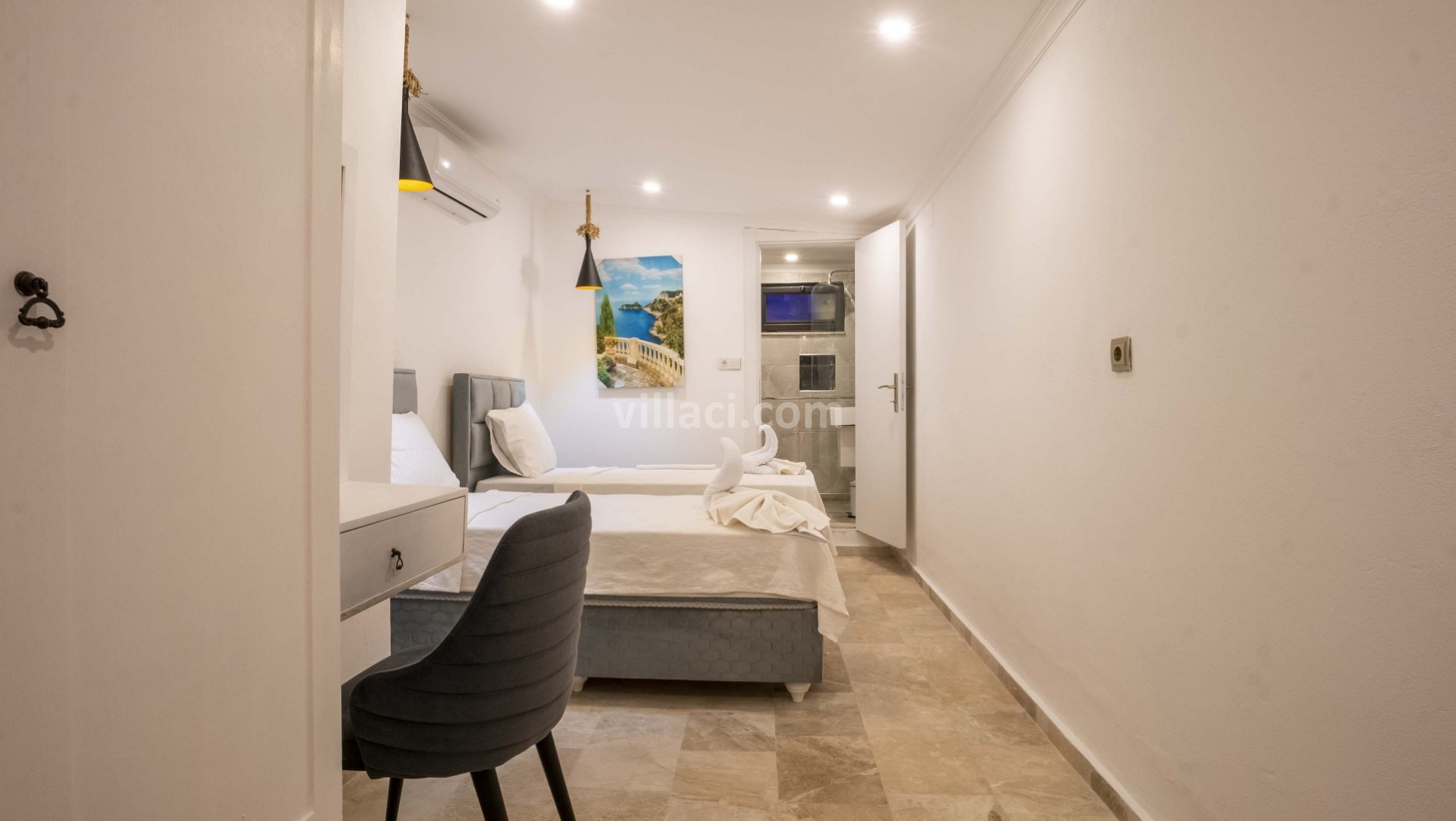 2. Yatak Odası2 Tek Kişilik Yatak, 1 Banyo/WC, Elbise dolabı, Makyaj Masası, Klima