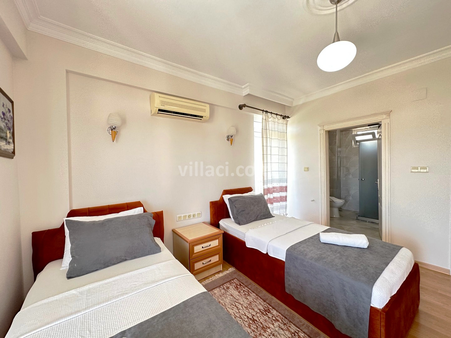 2. Yatak Odası2 Tek Kişilik Yatak, 1 Komodin, Elbise dolabı, Klima