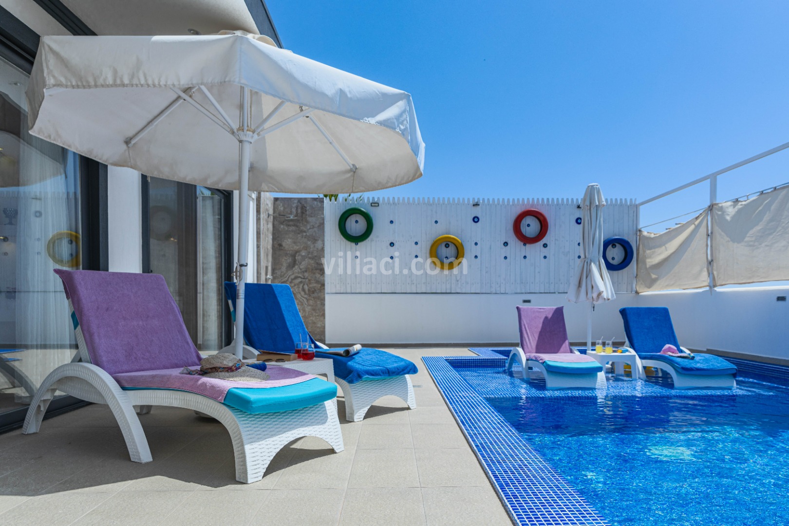 Antalya, Kaş ilçesine bağlı Üzümlü Mevkiinde bulunan Villa Elisa, 2 yatak odalı 4 kişilik konaklama kapasitesine sahip olan Tek Katlı özel havuzlu ve jakuzuli villalarımızdan biridir. Sakin ve huzurlu bir tatil geçirmek isteyen Muhafazakar konuklarımız, Çekirdek Aile ve Balayı çiftlerimiz için özel olarak tasarlanmış olup, konforunuz için her ayrıntı düşünülerek dizayn edilmiştir.