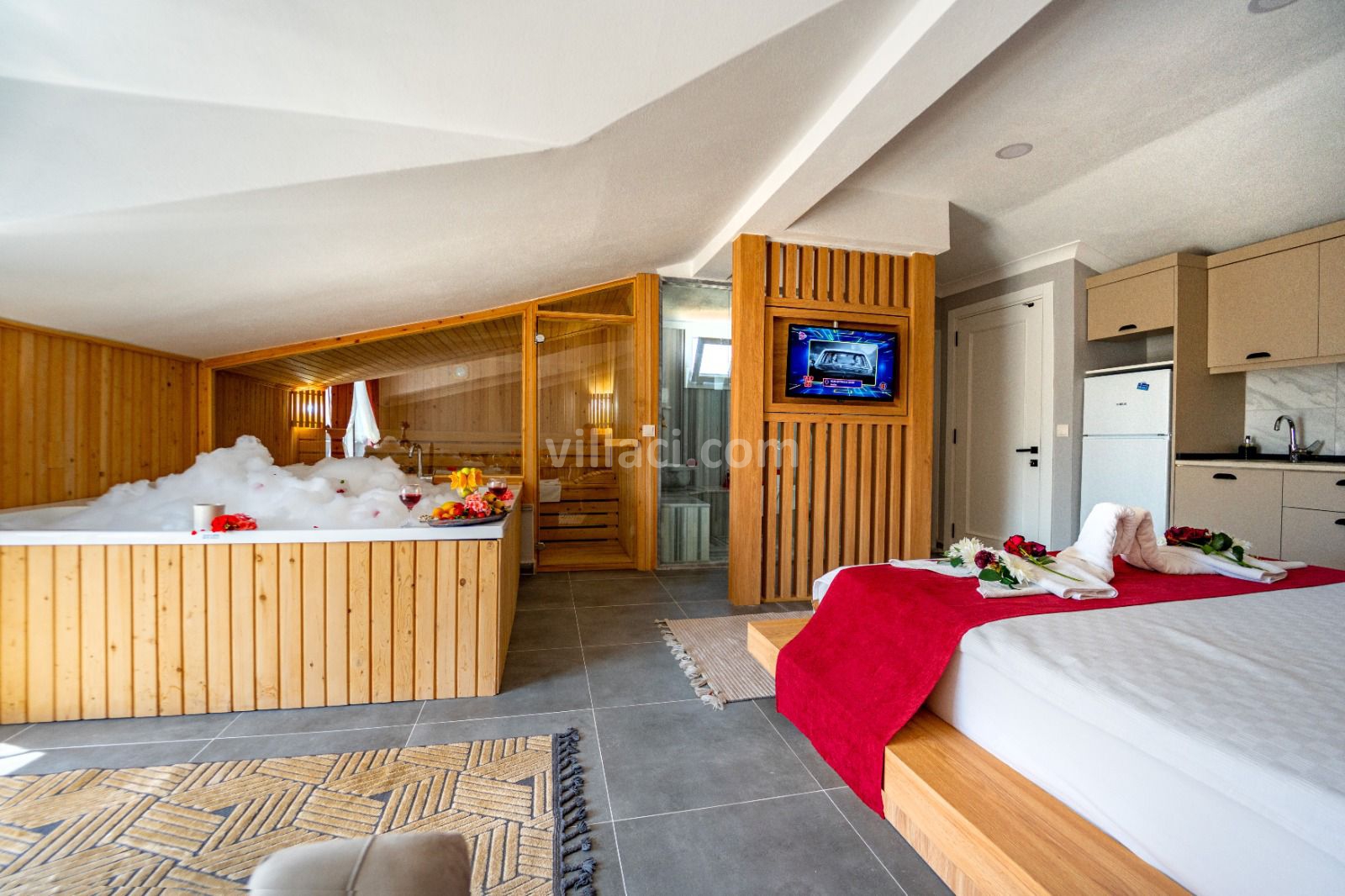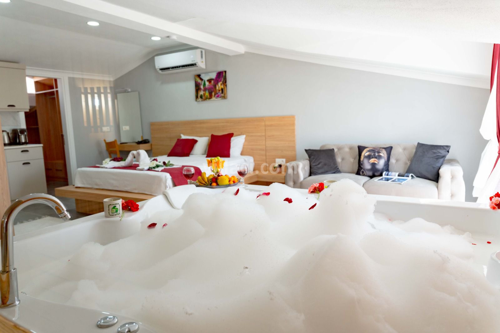 1. Yatak OdasıKlima, 1 Çift Kişilik Yatak, 1 Jakuzi, Sauna, 1 Banyo/WC, TV, Elbise dolabı, Makyaj Masası, Klima