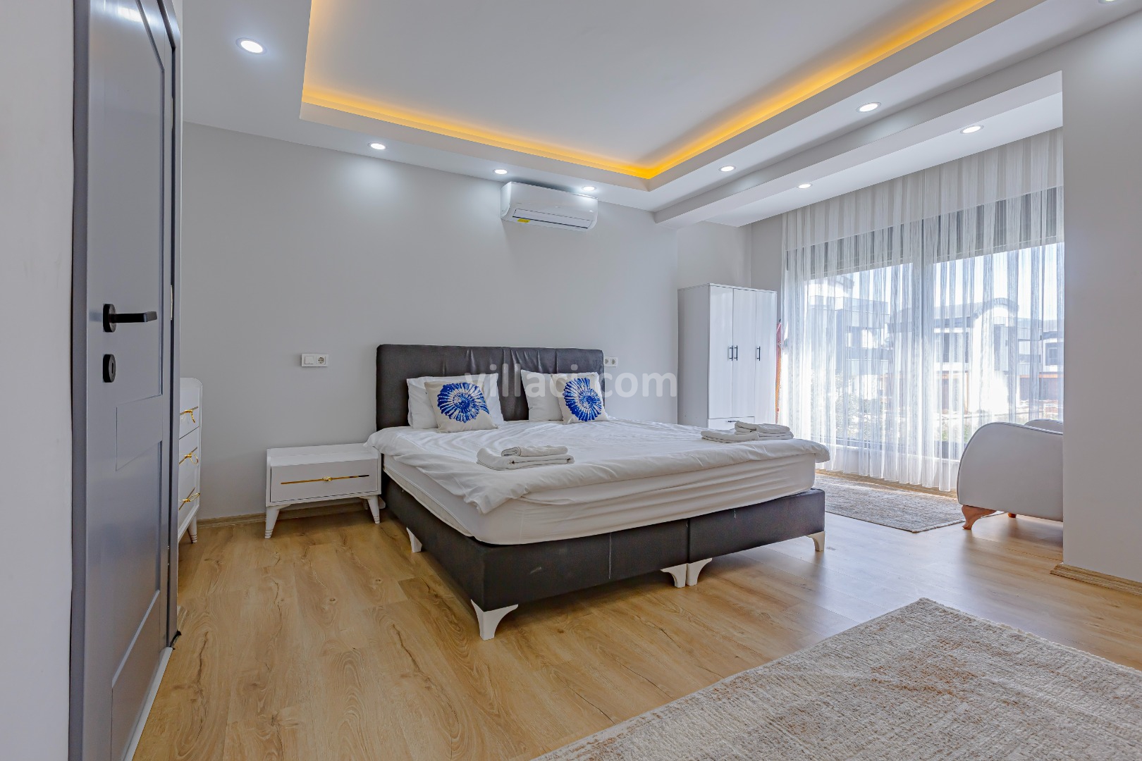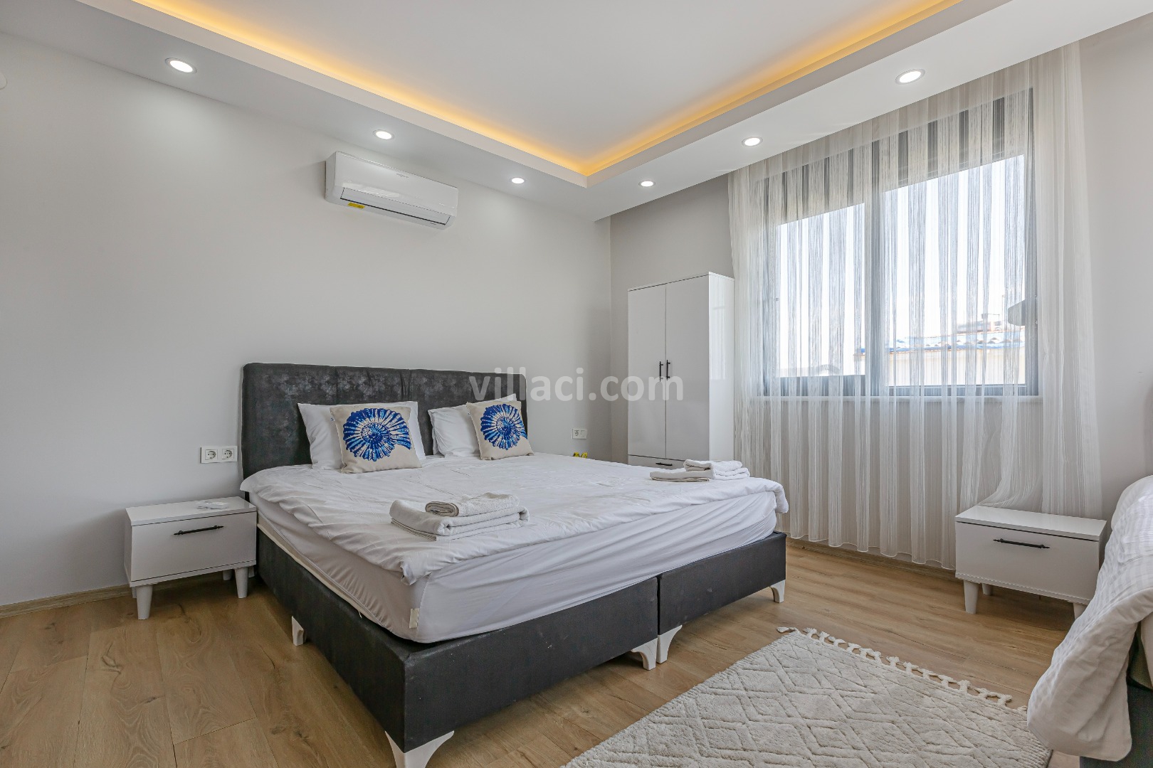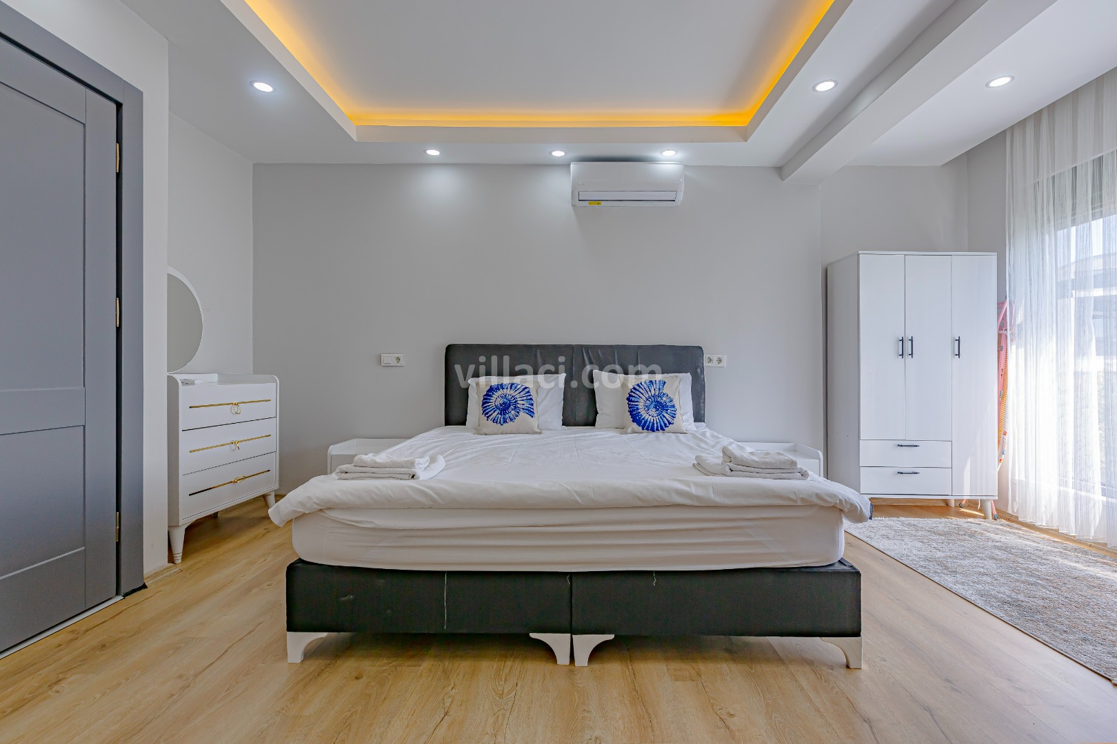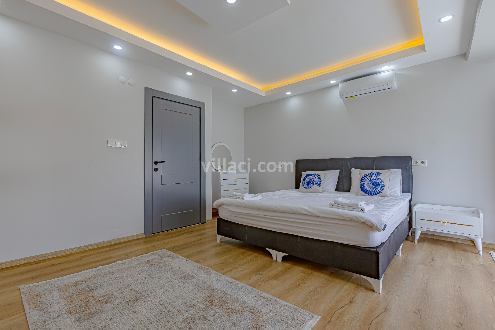 1. Yatak Odası1 Çift Kişilik Yatak, 1 Banyo/WC, 2 Komodin, Elbise dolabı, Makyaj Masası, Klima
