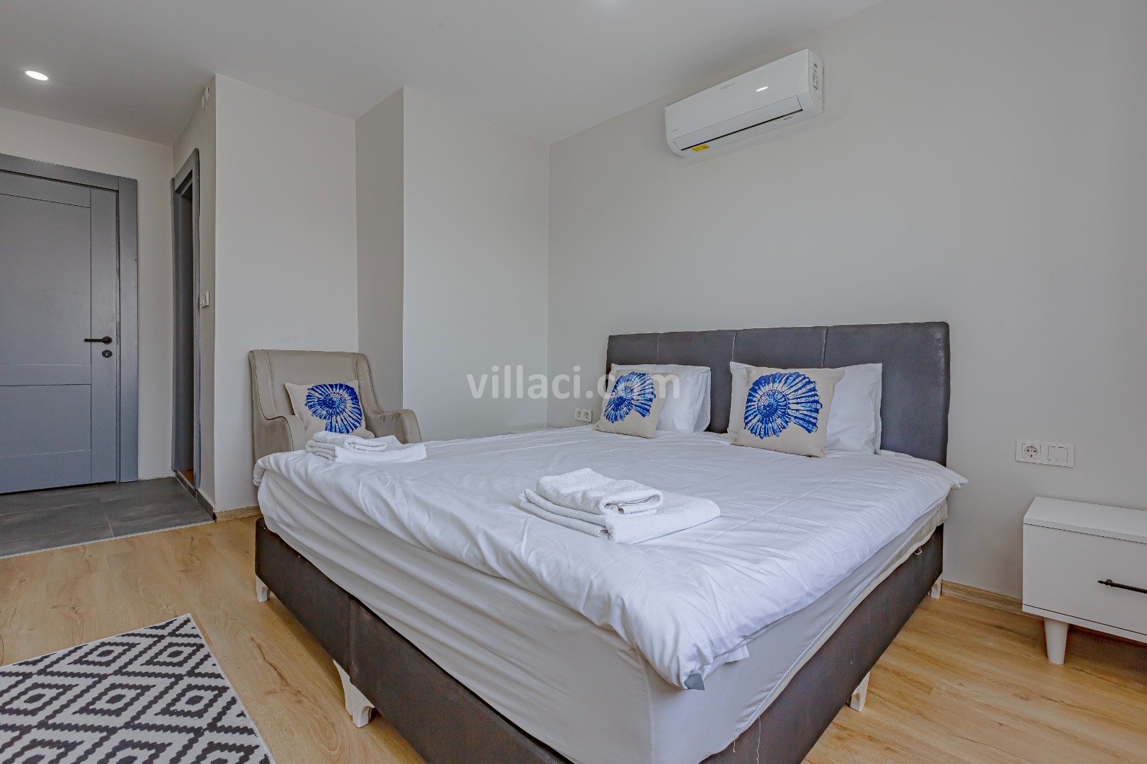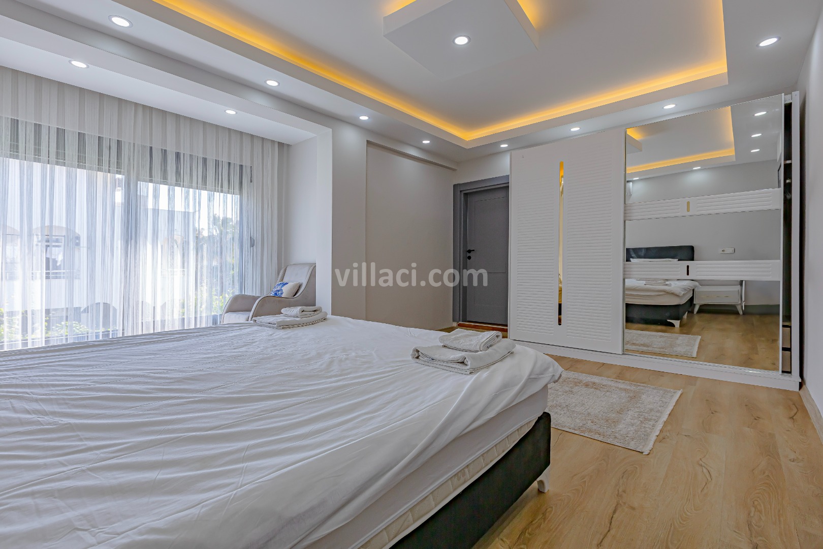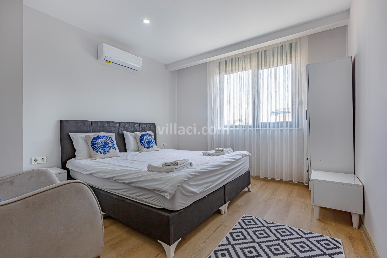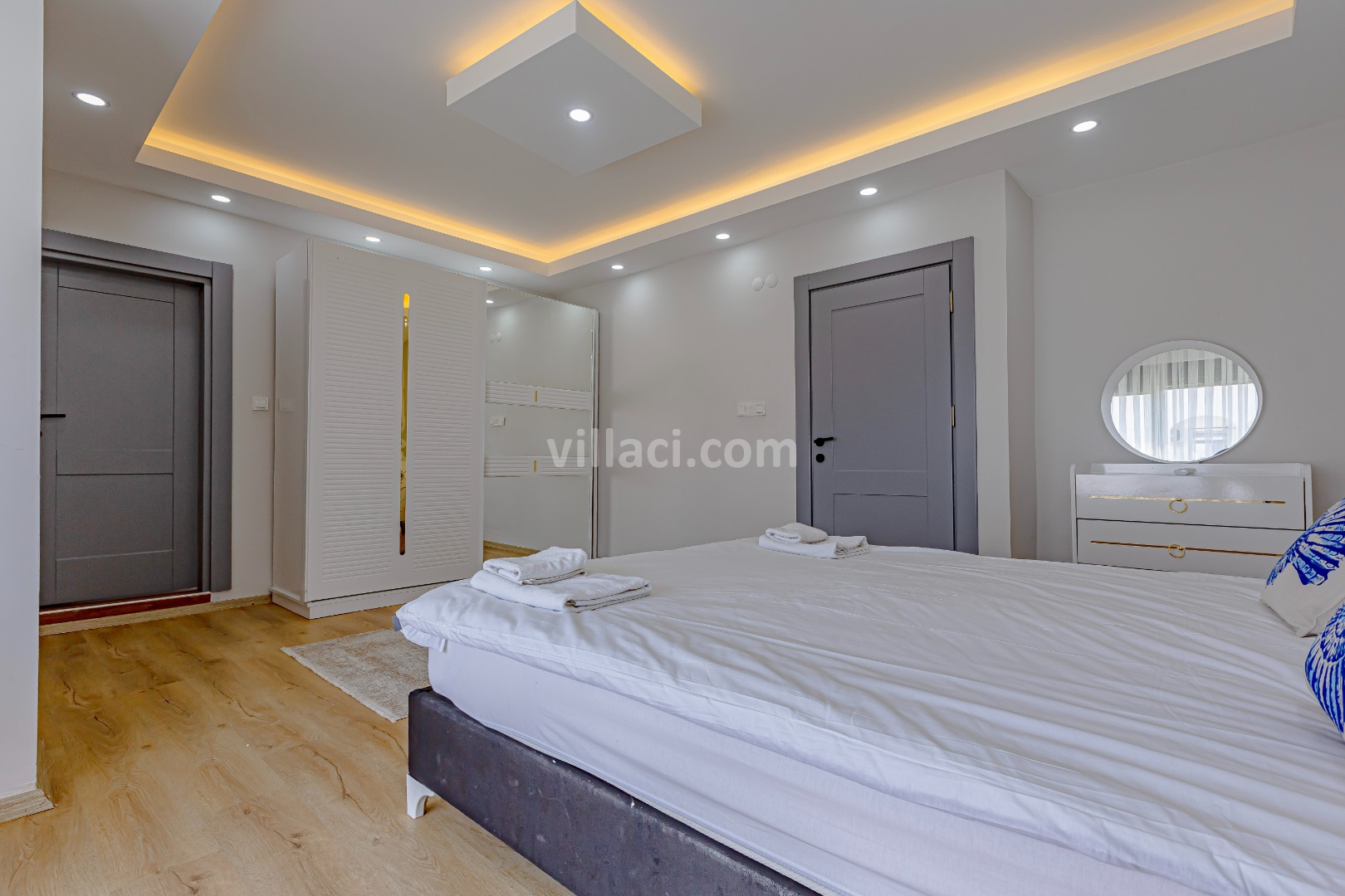 1. Yatak Odası1 Çift Kişilik Yatak, 1 Banyo/WC, 2 Komodin, Elbise dolabı, Makyaj Masası, Klima