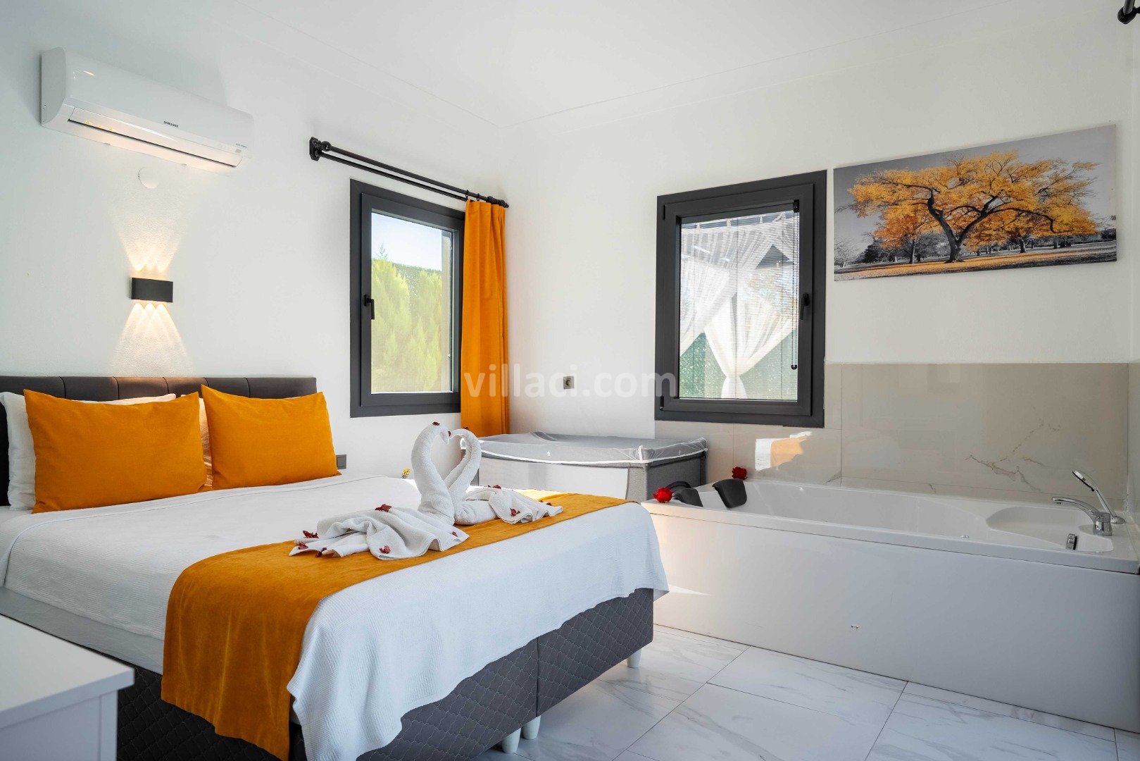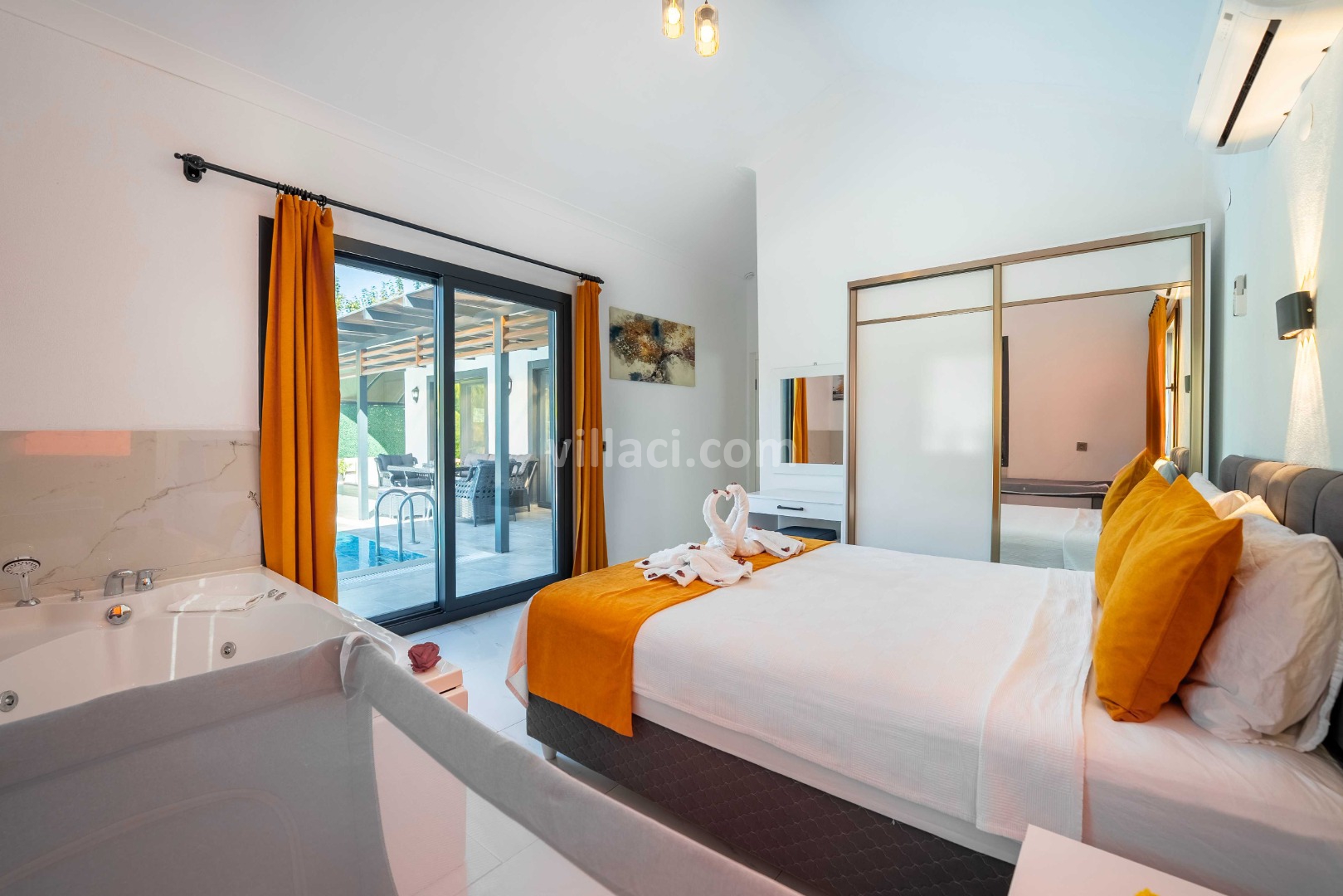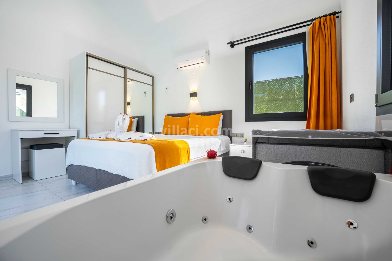 1. Yatak Odası1 Çift Kişilik Yatak, 1 Jakuzi, 1 Banyo/WC, 2 Komodin, Elbise dolabı, Makyaj Masası, Klima