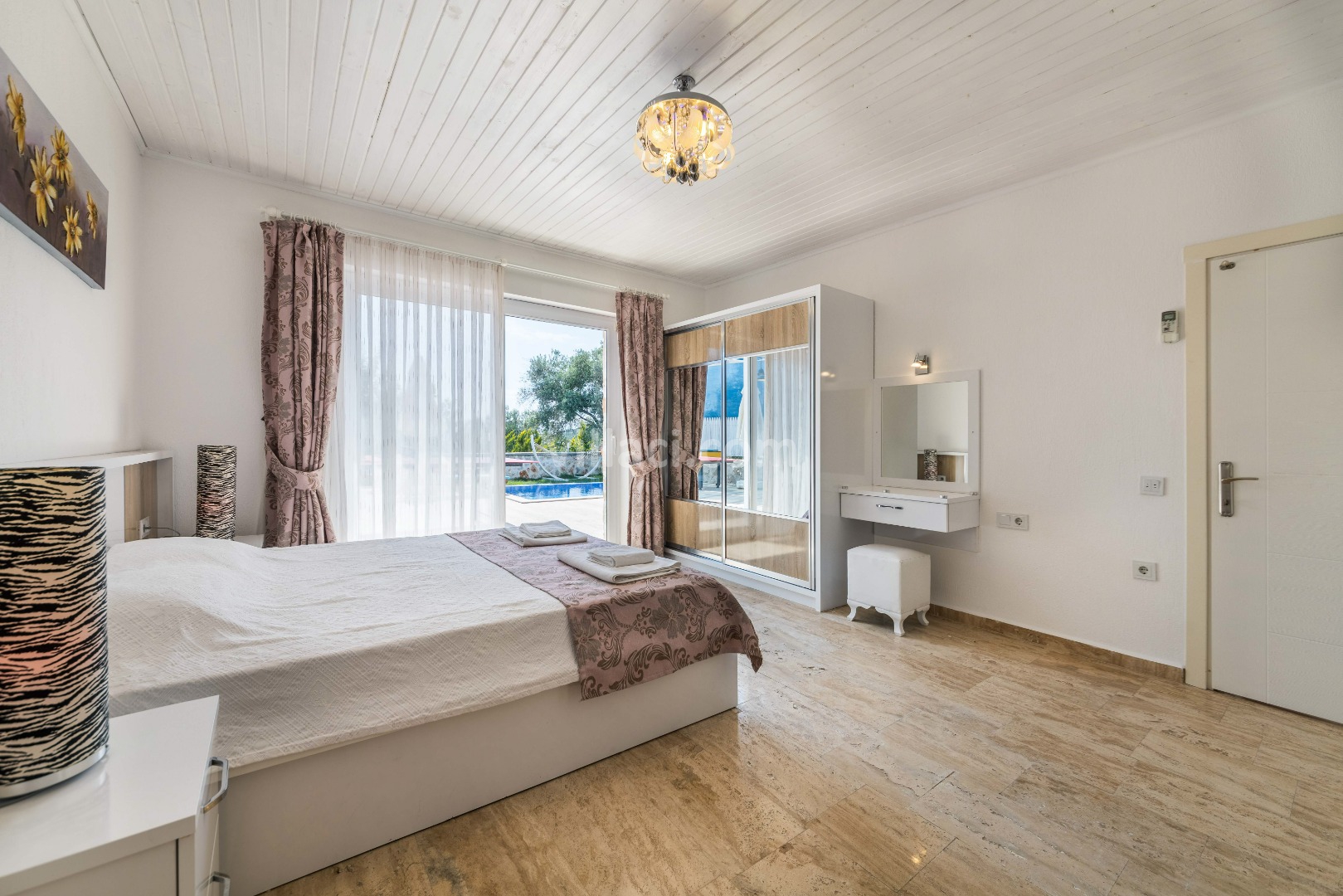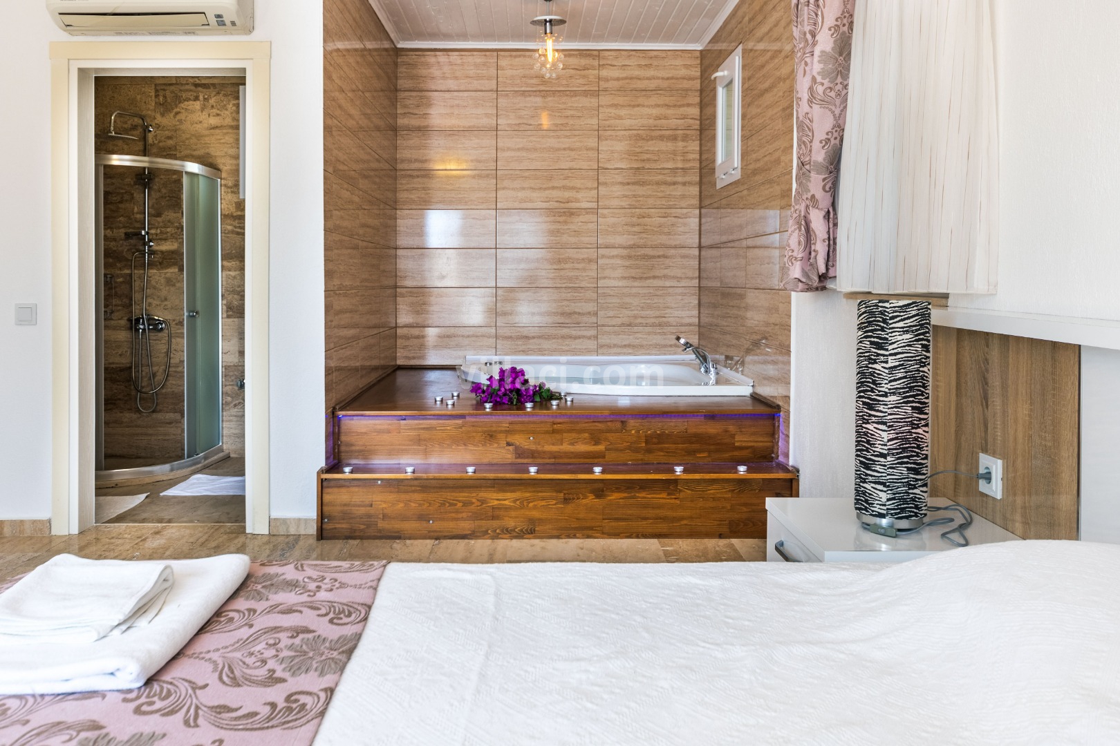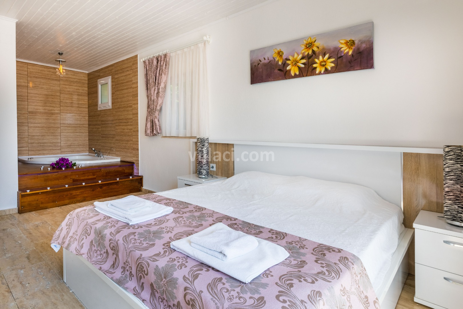 1. Yatak Odası1 Çift Kişilik Yatak, 1 Jakuzi, 1 Banyo/WC, 2 Komodin, Elbise dolabı, Makyaj Masası, Klima