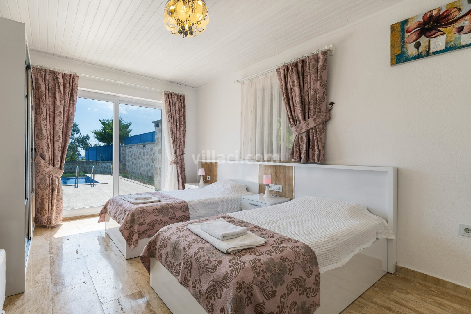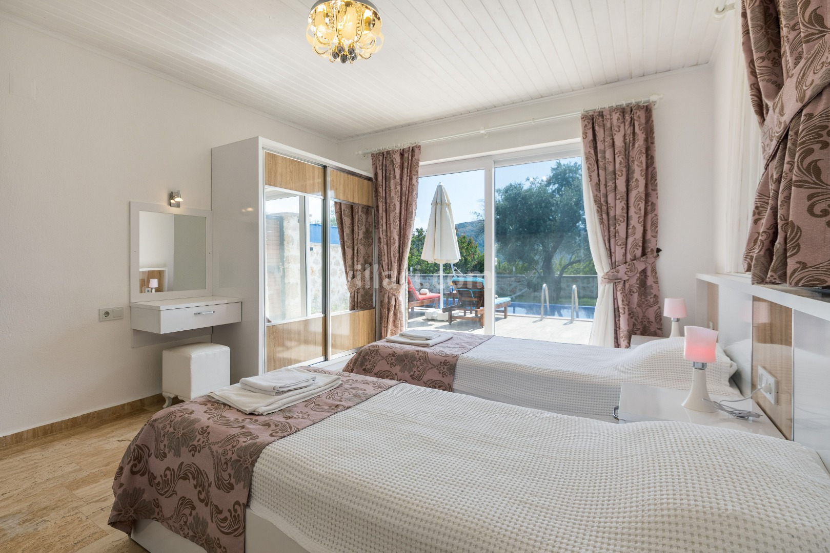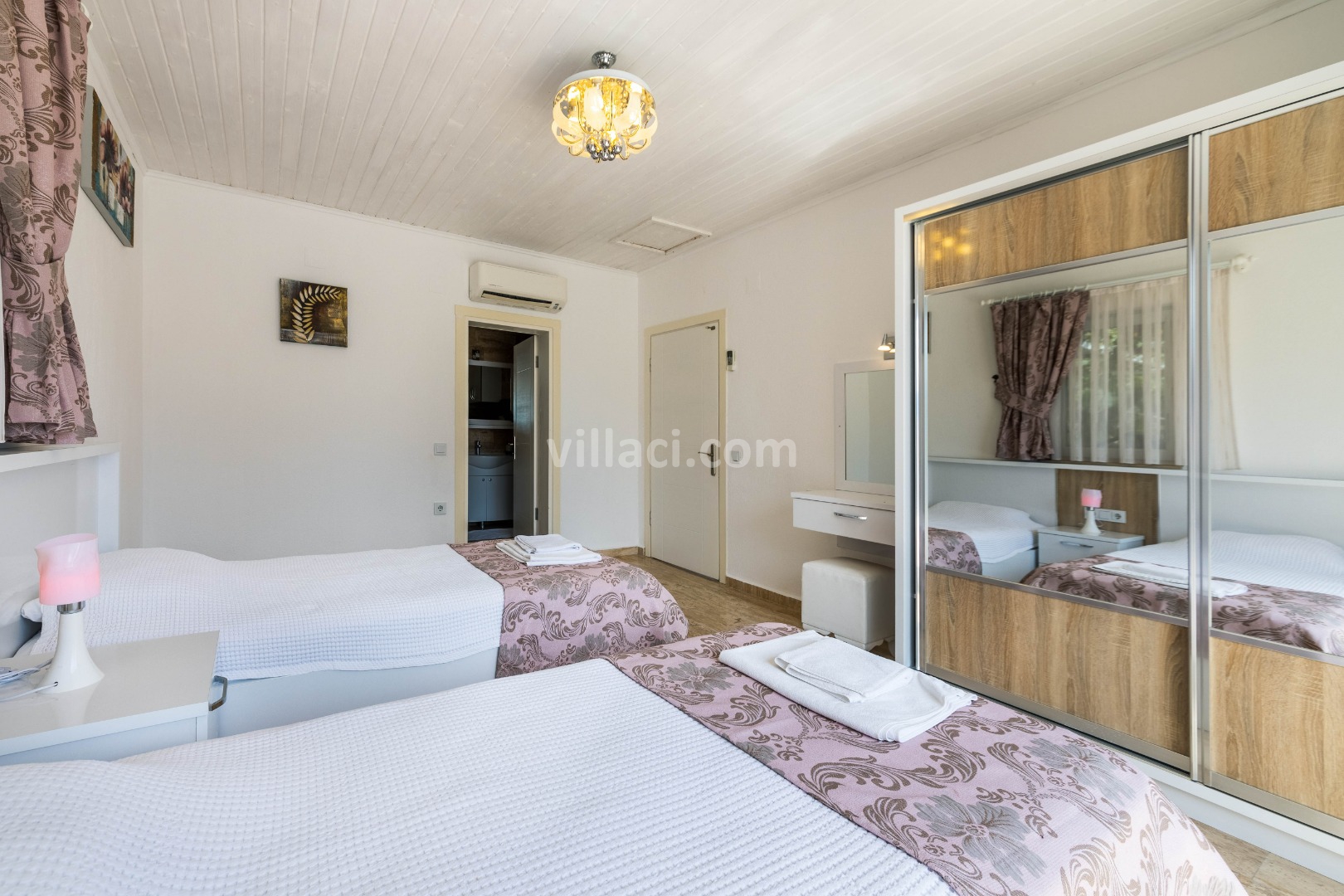2. Yatak Odası2 Tek Kişilik Yatak, 1 Banyo/WC, 2 Komodin, Elbise dolabı, Makyaj Masası, Klima