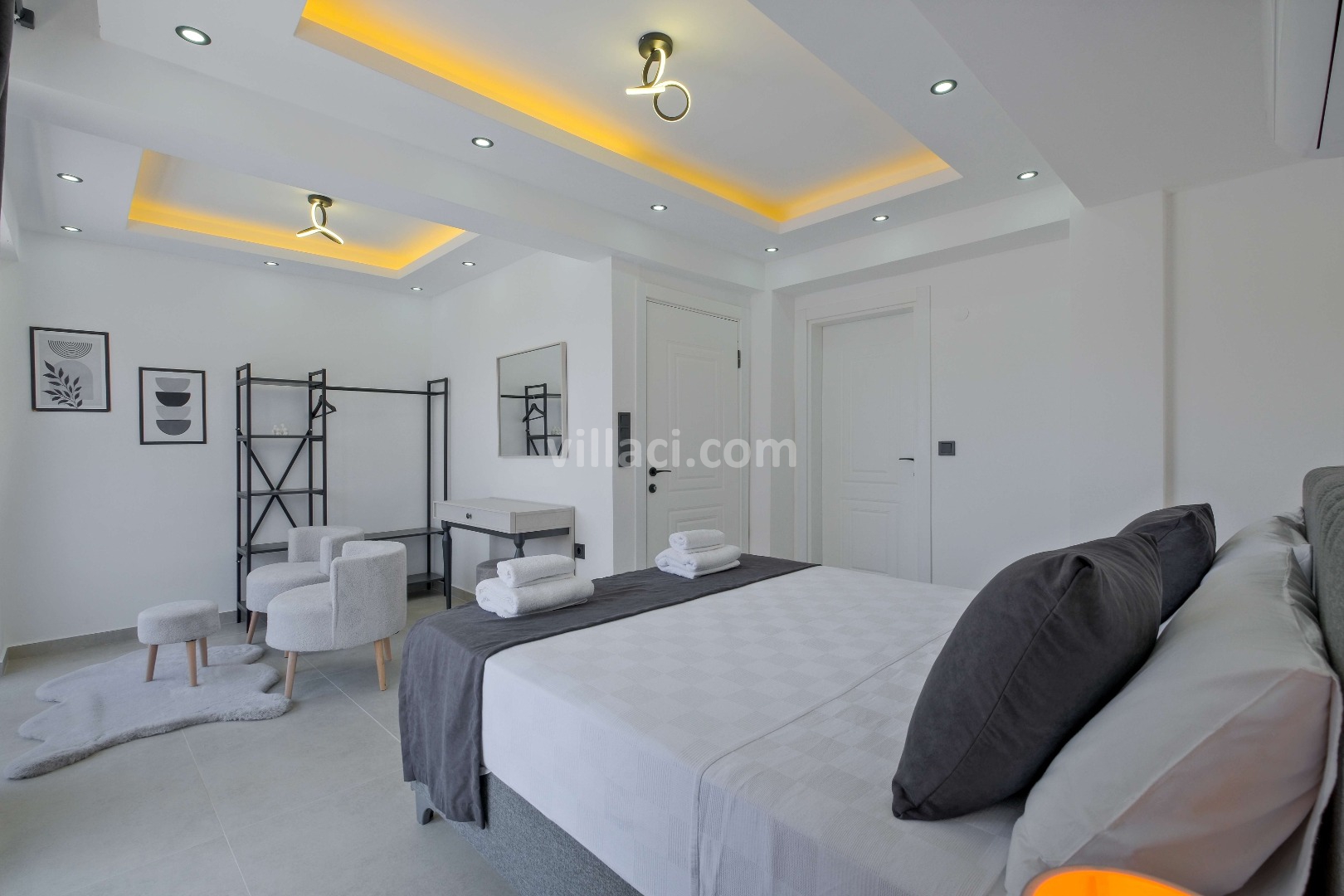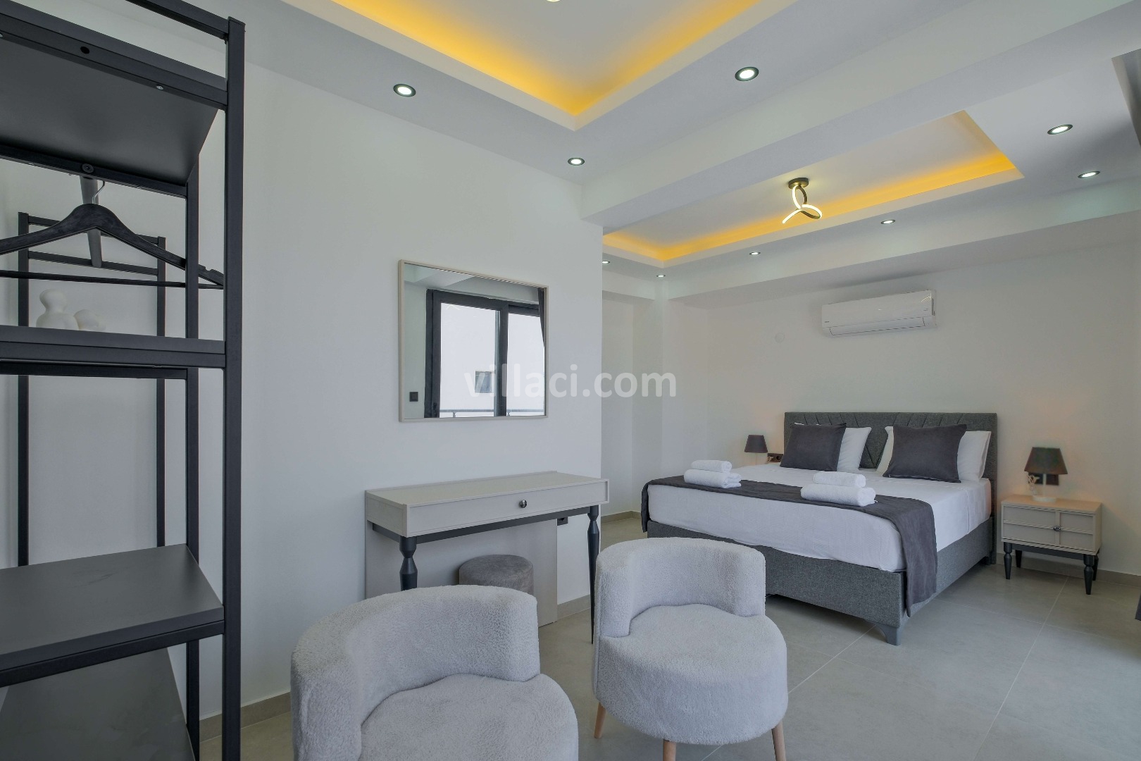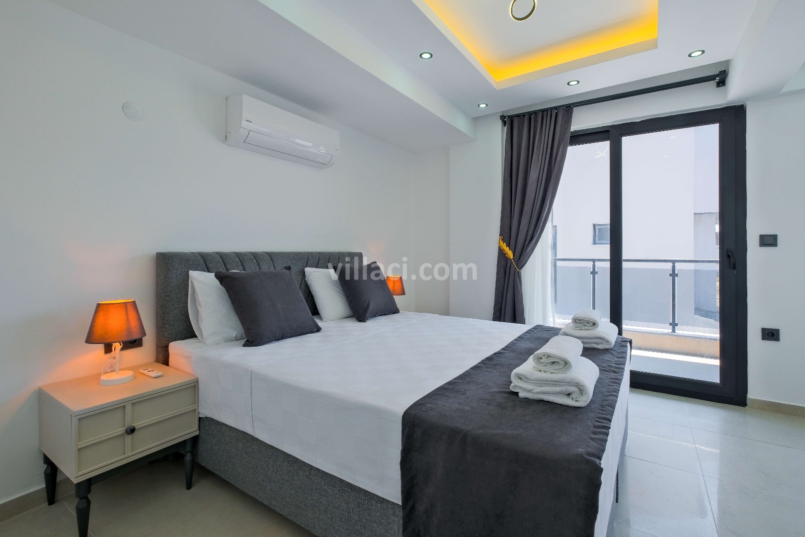 2. Yatak Odası1 Çift Kişilik Yatak, 1 Banyo/WC, 2 Komodin, Elbise dolabı, Makyaj Masası, Klima