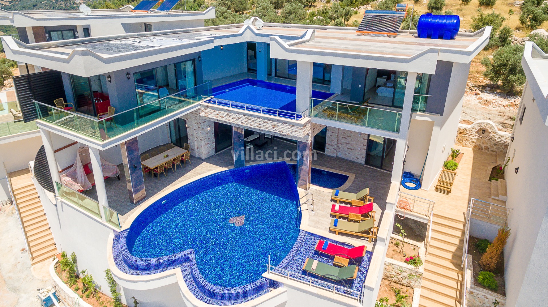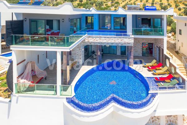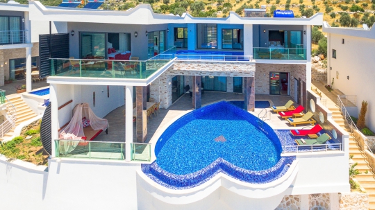 Antalya ili, Kaş / Kalkan ilçesinde bulunan Villa Luna Hill, 5 yatak odalı 10 kişilik konaklama kapasitesine sahip olup Dublex Deniz manzaralı özel havuzlu villalarımızdan biridir. Özel olarak tasarlanmış kalp şeklindeki havuzu, tatilinizi benzersiz kılmaktadır. Sakin ve huzurlu bir tatil geçirmek isteyen misafirlerimiz için özel olarak tasarlanmış olup, konforunuz için her ayrıntı düşünülerek dizayn edilmiştir.