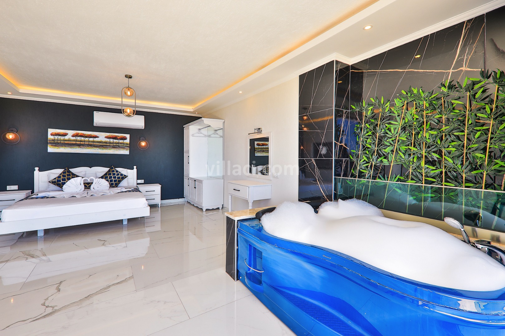1. Yatak Odası1 Çift Kişilik Yatak, 1 Jakuzi, 1 Banyo/WC, Elbise dolabı, Klima