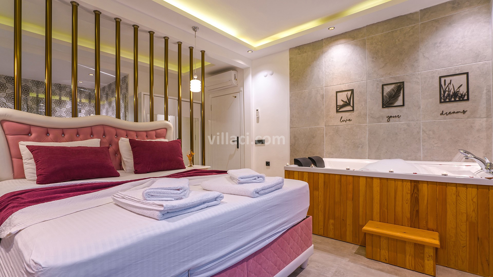 1. Yatak Odası1 Çift Kişilik Yatak, 1 Jakuzi, 1 Banyo/WC, Elbise dolabı, Makyaj Masası, Klima