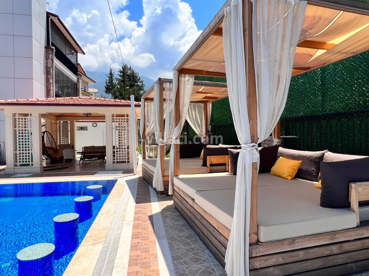 Muğla, Fethiye ilçesine bağlı Ölüdeniz/Hisarönü Mevkiinde bulunan Villa Maris, 7 yatak odalı 14 kişilik konaklama kapasitesine sahip olup Tripleks özel havuzlu villalarımızdan biridir. Sakin ve huzurlu bir tatil geçirmek isteyen Geniş Aile konuklarımız için özel olarak tasarlanmış olup, konforunuz için her ayrıntı düşünülerek dizayn edilmiştir.