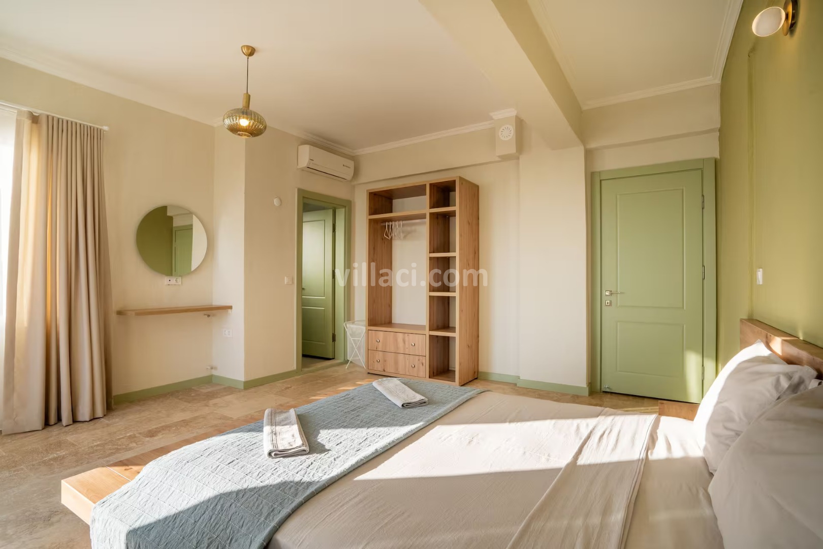 1. Yatak Odası1 Çift Kişilik Yatak, 1 Banyo/WC, 2 Komodin, Elbise dolabı, Makyaj Masası, Klima
