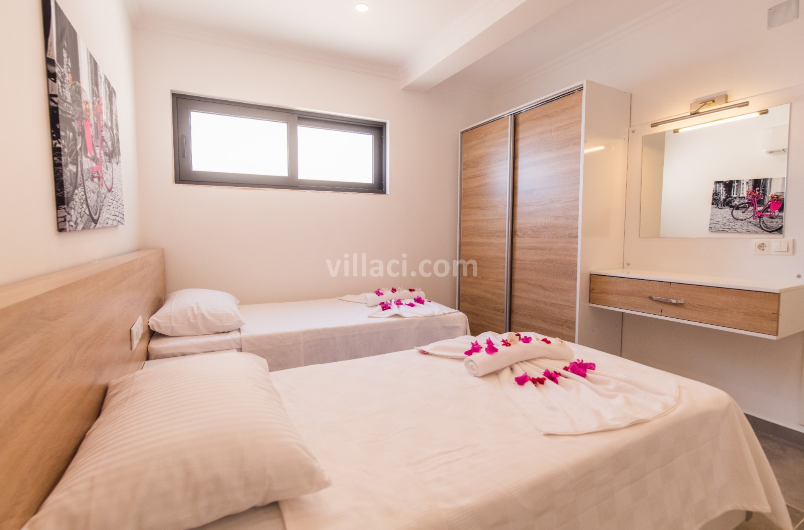2. Yatak Odası2 Tek Kişilik Yatak, 1 Banyo/WC, 1 Komodin, Elbise dolabı, Makyaj Masası, Klima