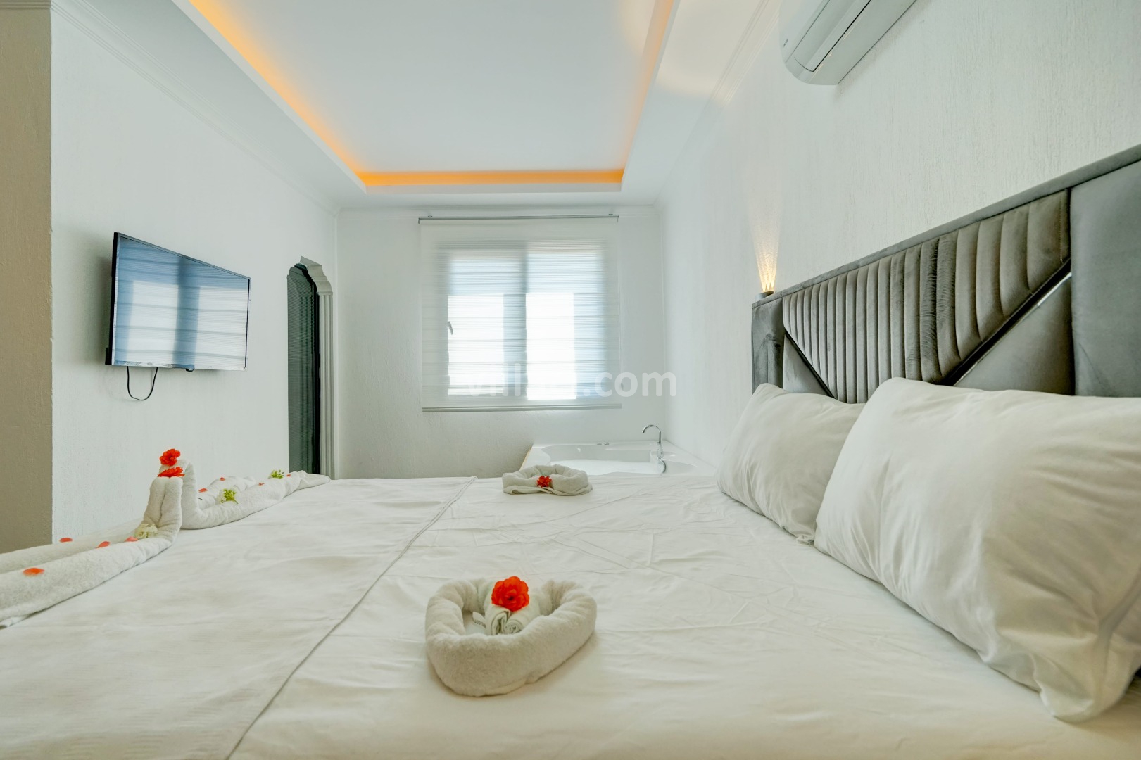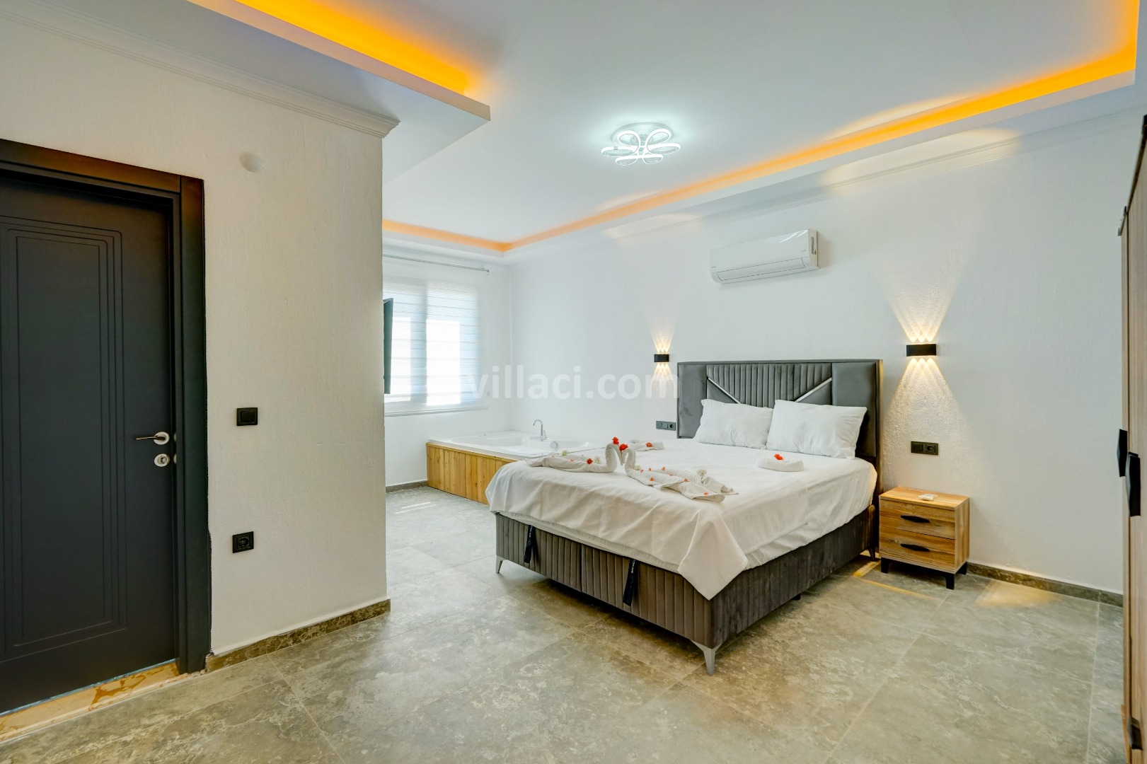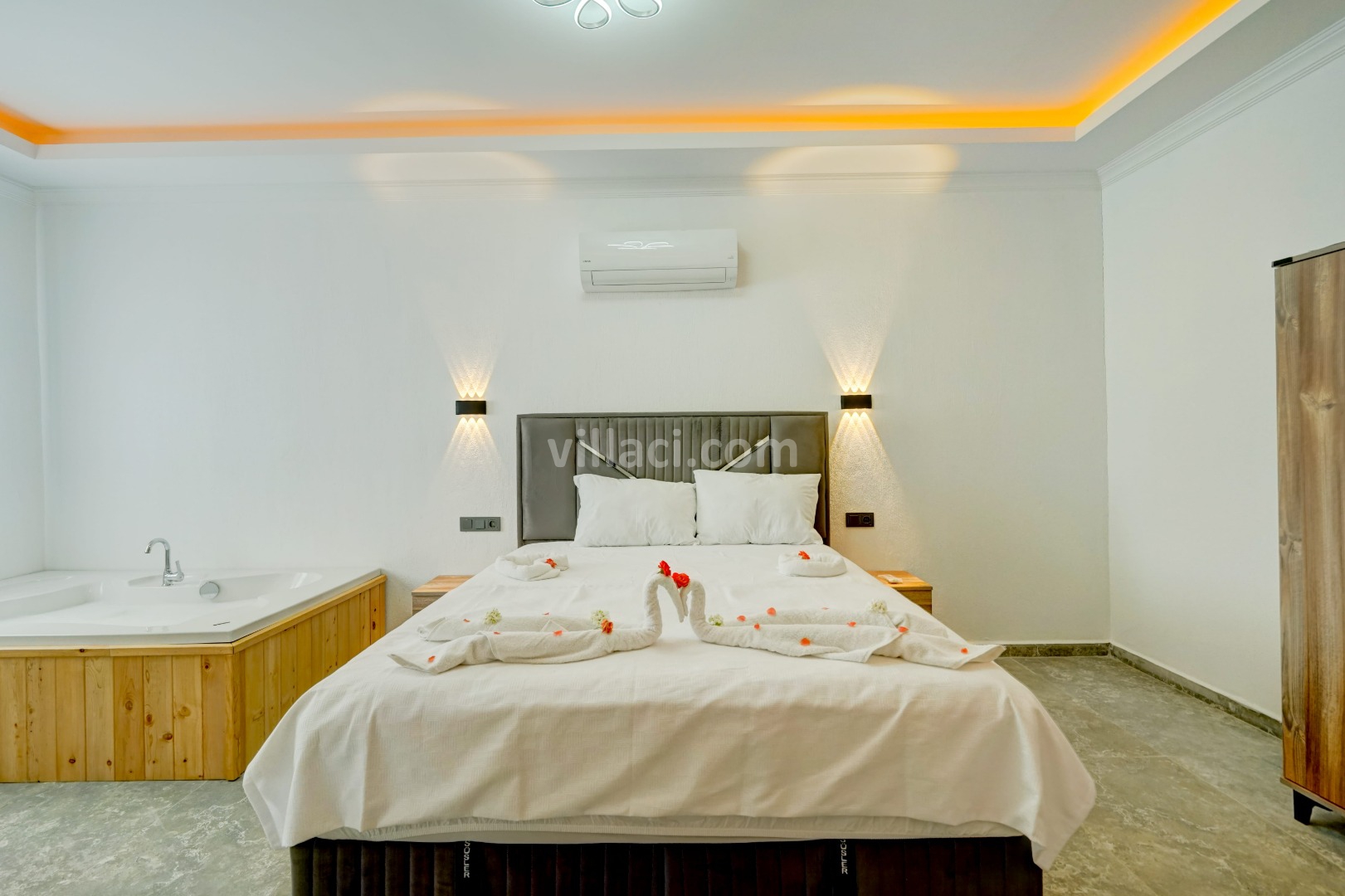 1. Yatak Odası2 Çift Kişilik Yatak, 1 Jakuzi, 1 Banyo/WC, TV, 2 Komodin, Elbise dolabı, Klima