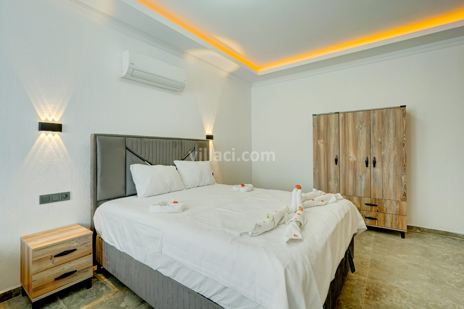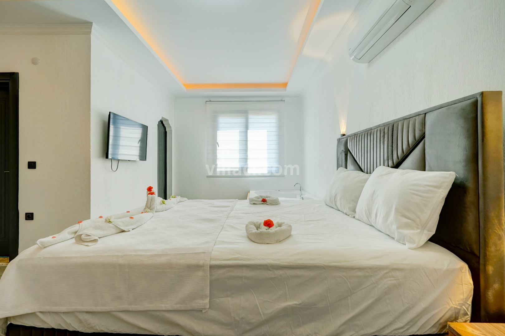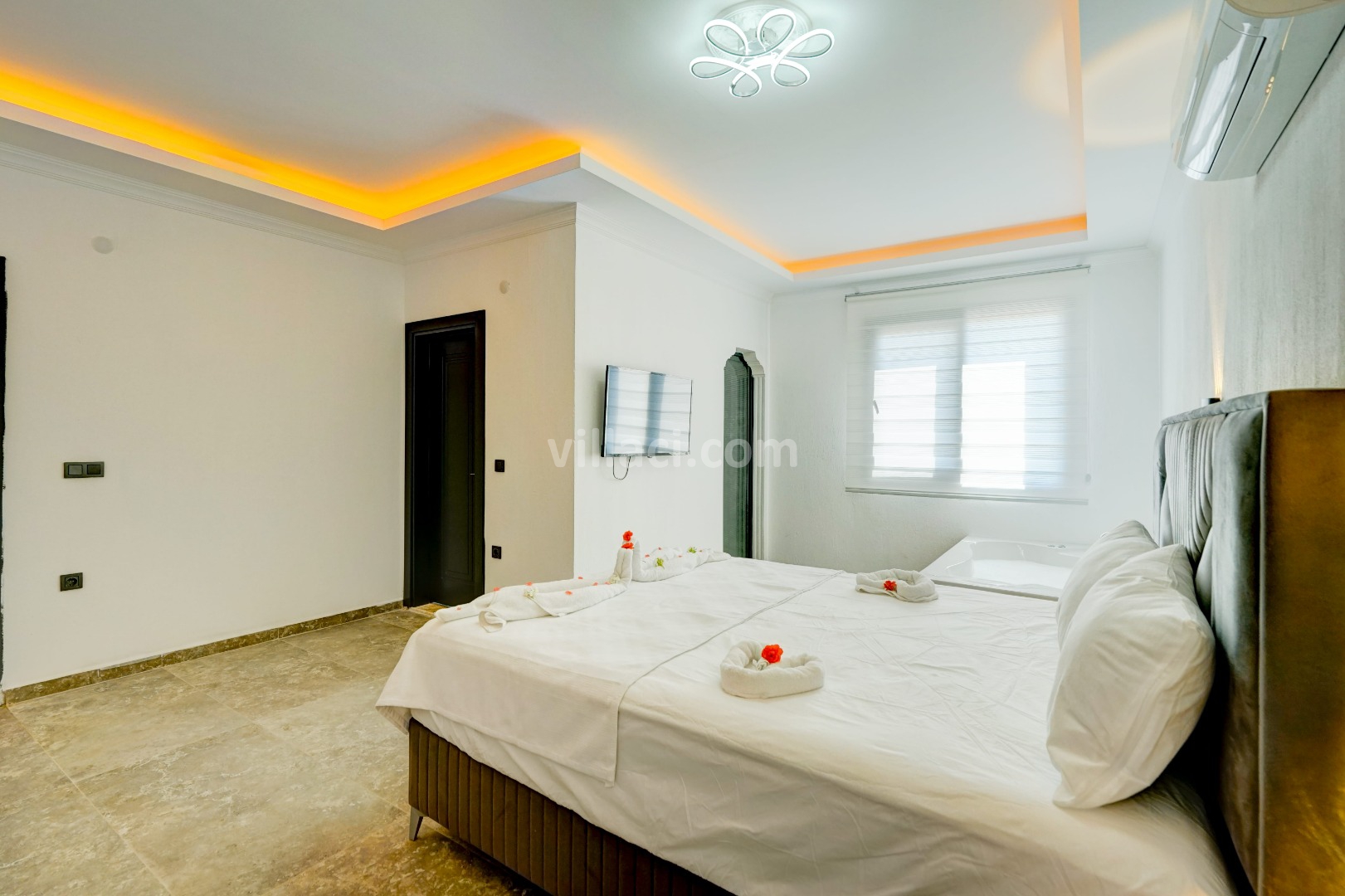1. Yatak Odası2 Çift Kişilik Yatak, 1 Jakuzi, 1 Banyo/WC, TV, 2 Komodin, Elbise dolabı, Klima