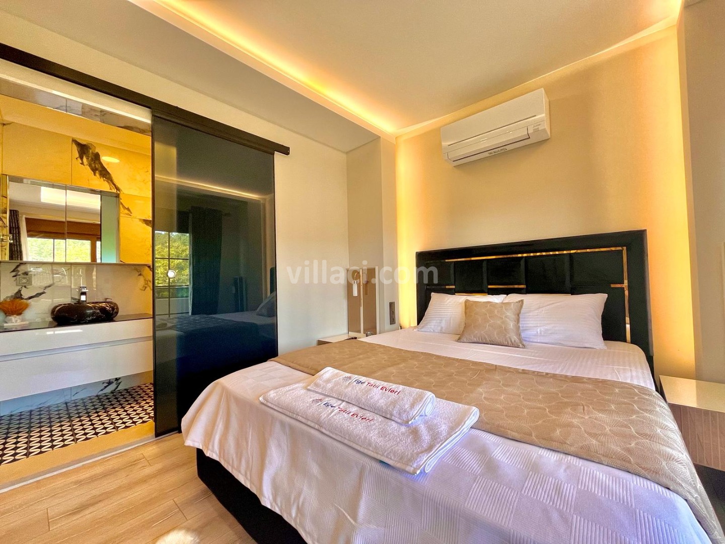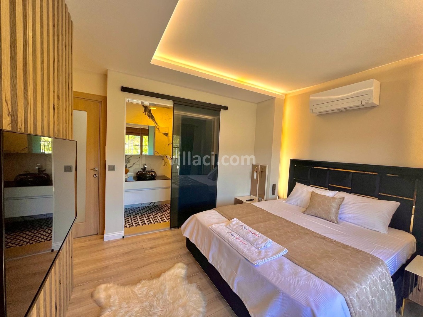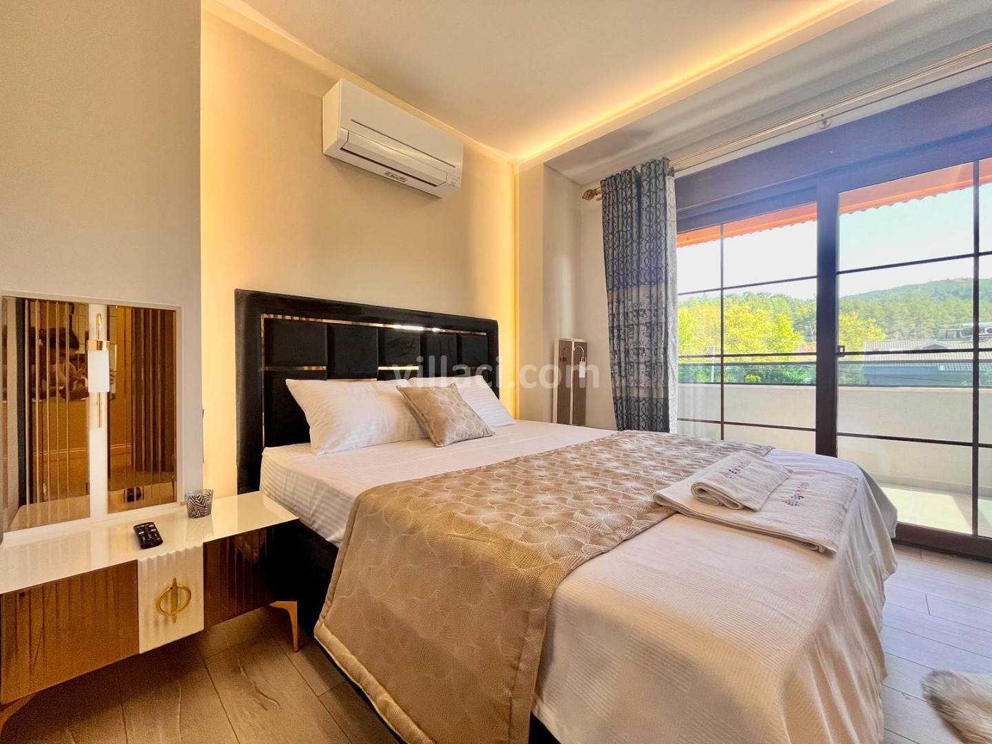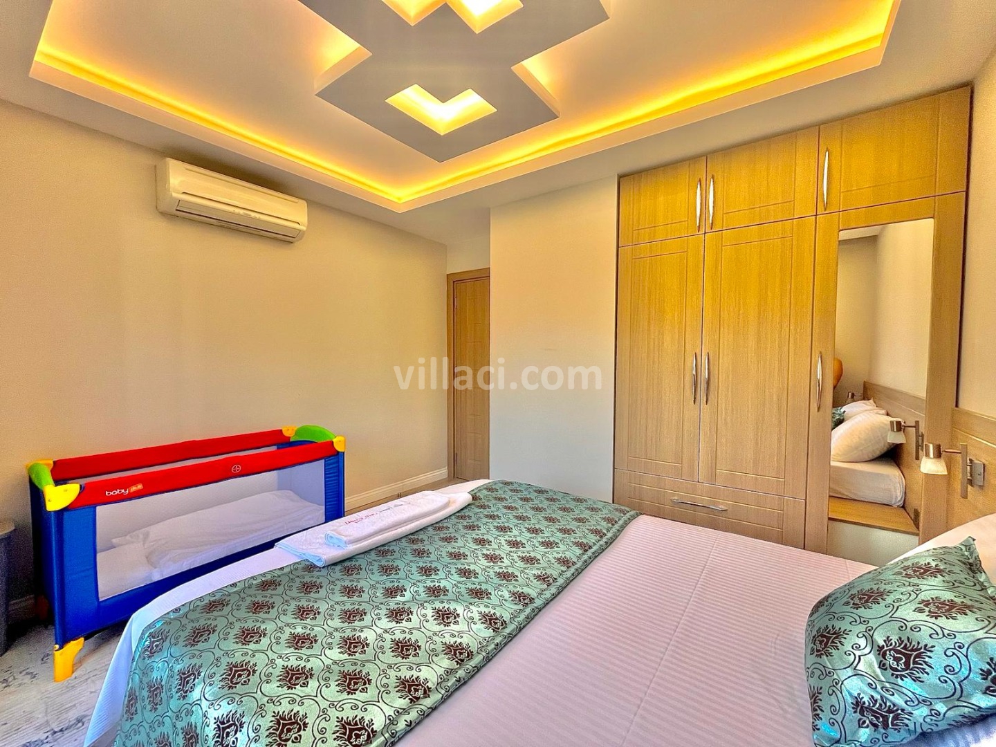 1. Yatak Odası1 Çift Kişilik Yatak, 1 Çift Kişilik Yatak, 1 Banyo/WC, 1 Banyo/WC, TV, TV, 2 Komodin, 2 Komodin, Elbise dolabı, Elbise dolabı, Makyaj Masası, Makyaj Masası, Klima, Klima