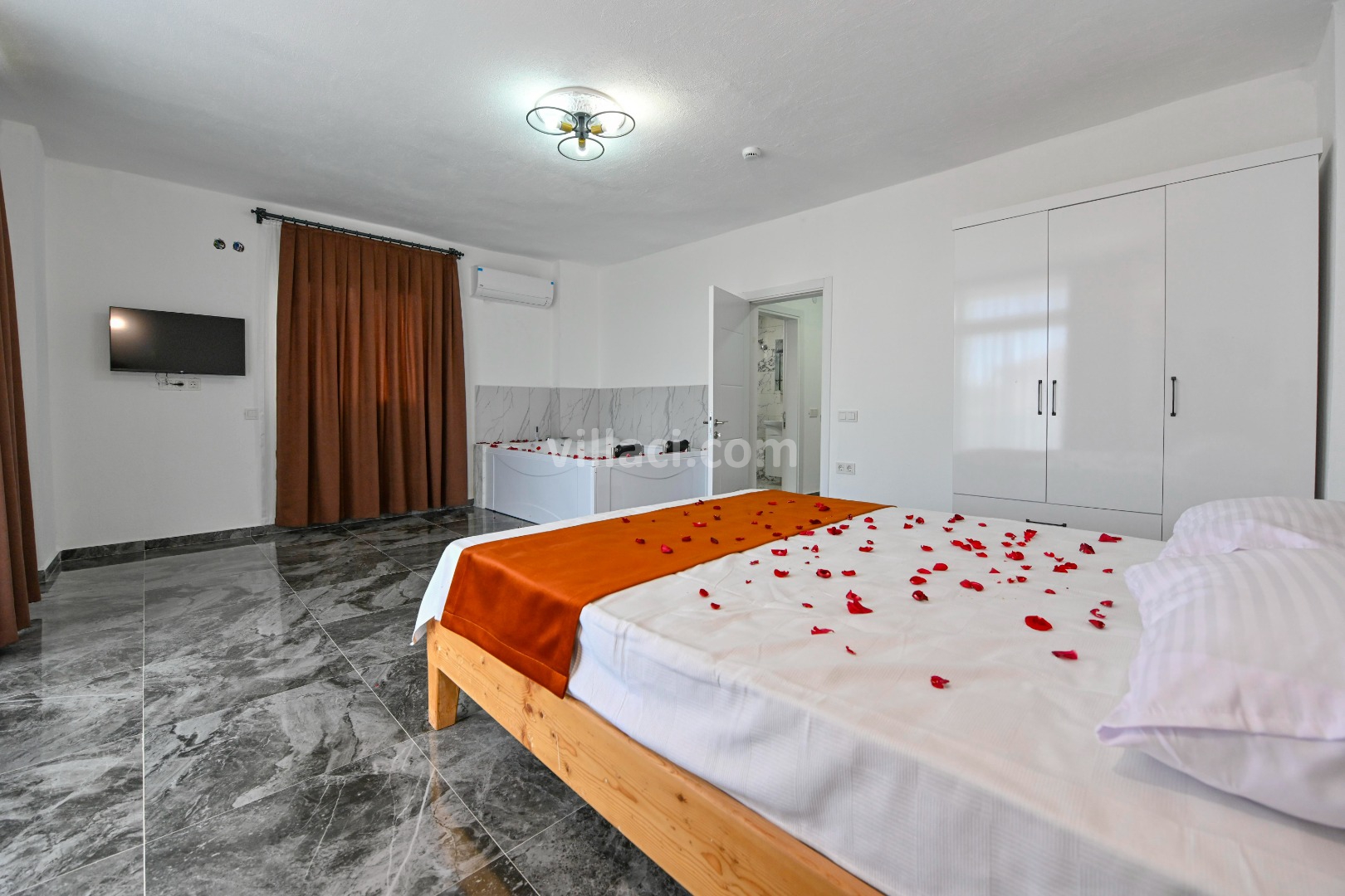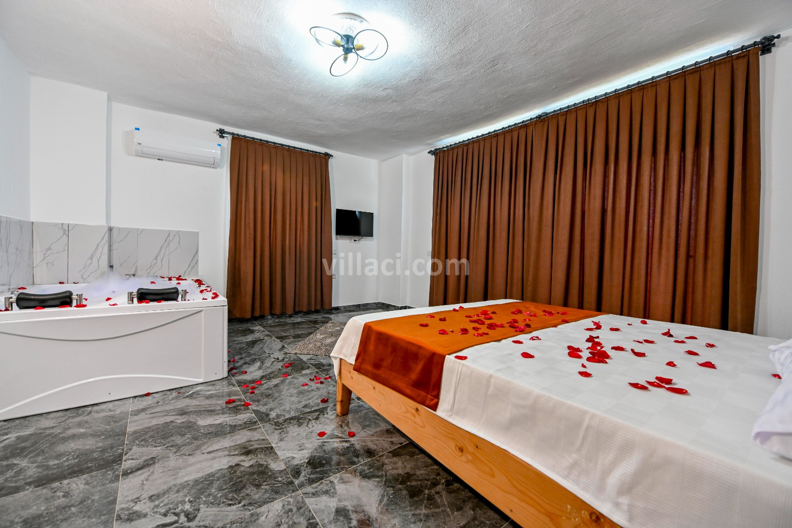 2. Yatak Odası1 Çift Kişilik Yatak, 1 Jakuzi, 1 Banyo/WC, TV, 2 Komodin, Elbise dolabı, Makyaj Masası, Klima