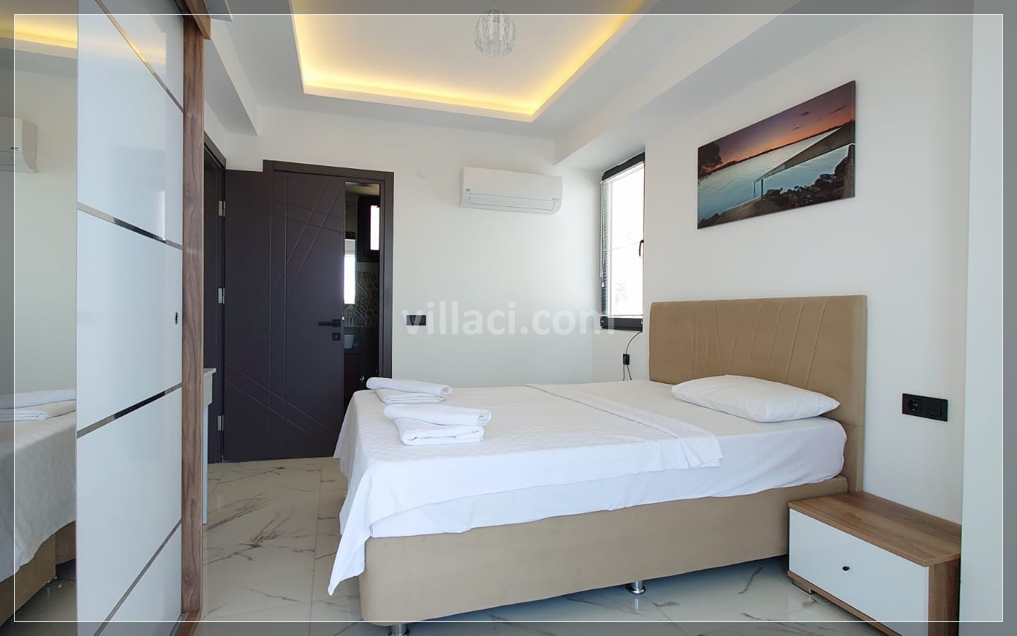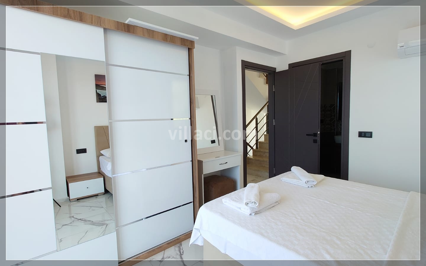 1. Yatak Odası1 Çift Kişilik Yatak, 1 Banyo/WC, 2 Komodin, Elbise dolabı, Makyaj Masası, Klima