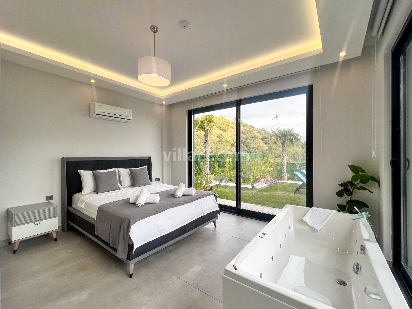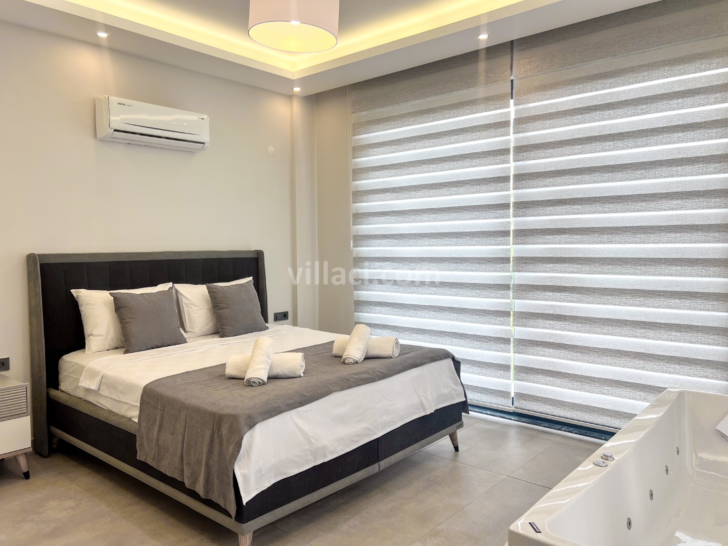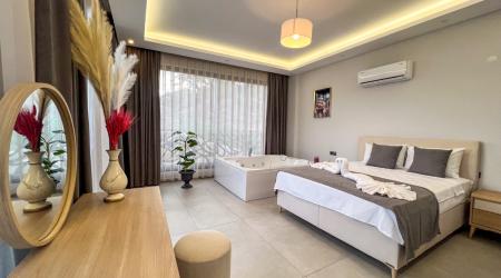 1. Yatak Odası1 Çift Kişilik Yatak, 1 Jakuzi, 1 Banyo/WC, Elbise dolabı, Makyaj Masası, Klima