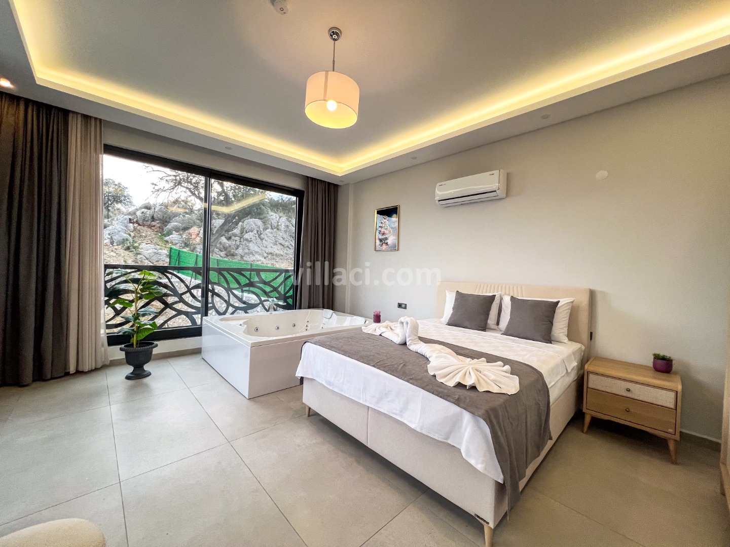 2. Yatak Odası1 Çift Kişilik Yatak, 1 Jakuzi, 1 Banyo/WC, Elbise dolabı, Makyaj Masası, Klima