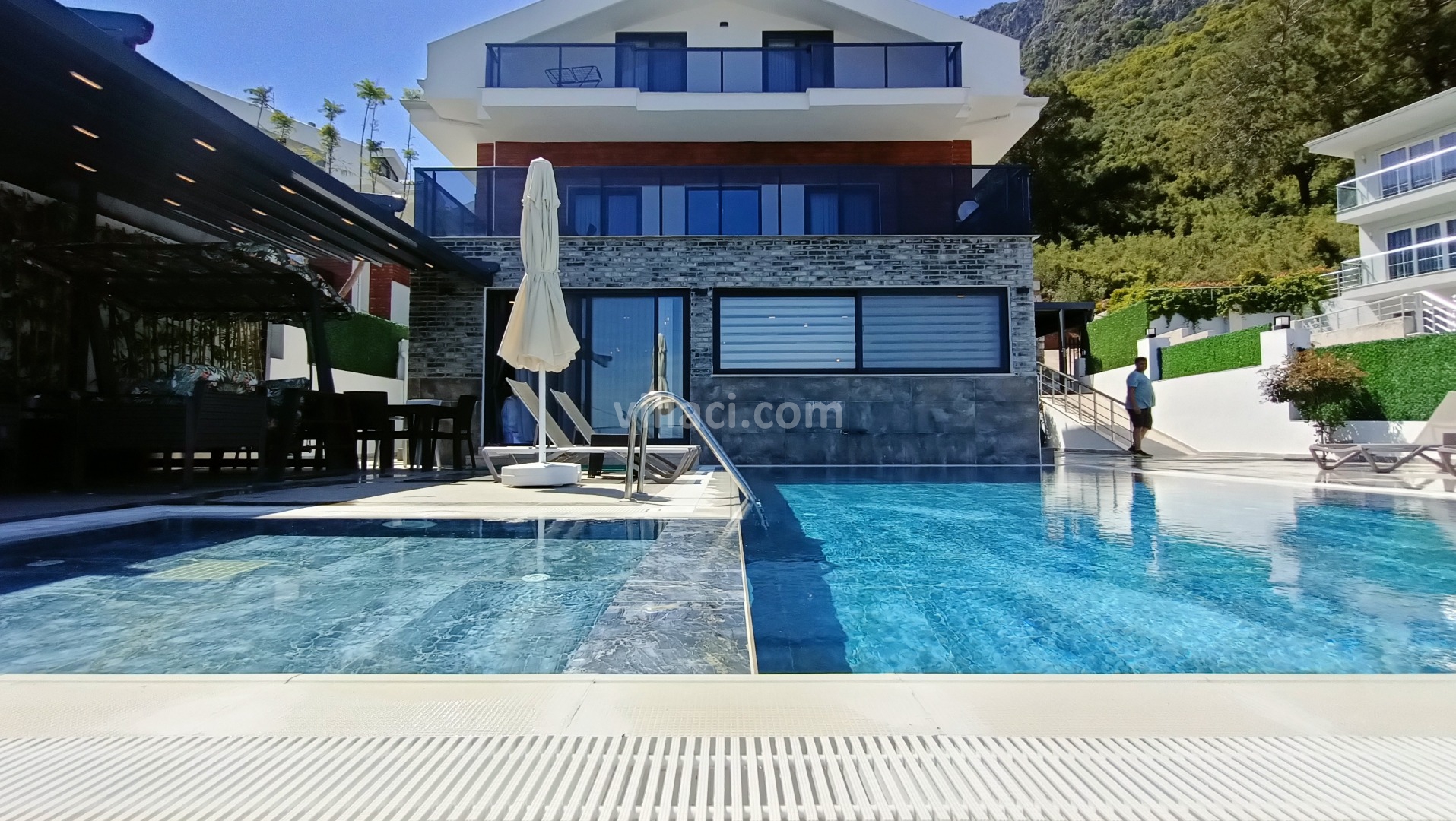 Muğla, Fethiye ilçesine bağlı Ovacık Mevkiinde bulunan Villa Ventus H, 4 yatak odalı 8 kişilik konaklama kapasitesine sahip olup Triplex Doğa manzaralı özel havuzlu villalarımızdan biridir. Sakin ve huzurlu bir tatil geçirmek isteyen Geniş aile gruplarımız için özel olarak tasarlanmış olup, konforunuz için her ayrıntı düşünülerek dizayn edilmiştir.