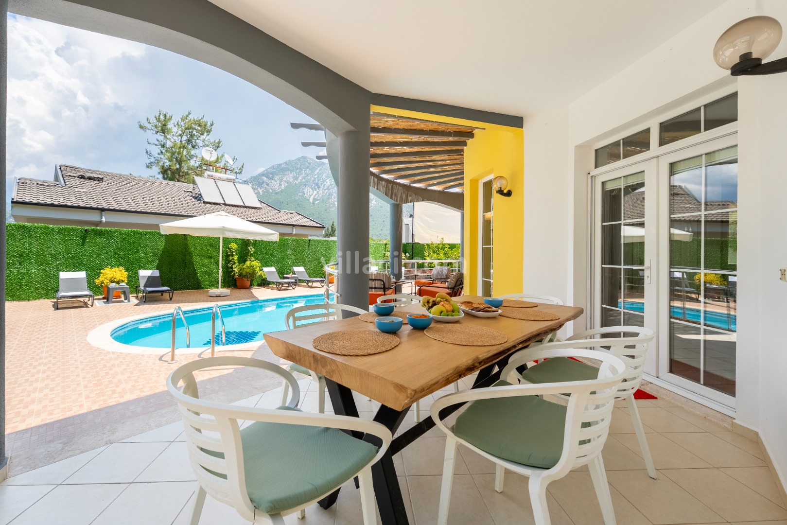 Muğla, Fethiye ilçesine bağlı Yeşil Üzümlü Mevkiinde bulunan Villa Yamaç, 4 yatak odalı 8 kişilik konaklama kapasitesine sahip olup Dubleks Doğa manzaralı özel havuzlu villalarımızdan biridir. Sakin ve huzurlu bir tatil geçirmek isteyen Geniş Aile ve Arkadaş Gruplarımız için özel olarak tasarlanmış olup, konforunuz için her ayrıntı düşünülerek dizayn edilmiştir.